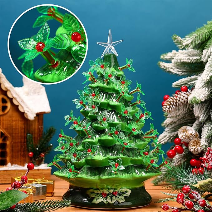 • Distinctive Shaped: these ceramic Christmas tree lights are holly designs, transparent green leaves with red berries in the center suitable for most medium sized ceramic Christmas trees, adorable and beautiful, which will bring a more romantic and cute atmosphere on Christmas