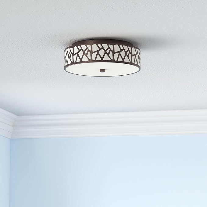 • Elegant Unique Design:Flushmount ceiling light appearance has a unique patterned metal frame and oil-rubbed bronze knob decoration which looks vintage and elegant house; the bottom is white frosted glass panels, so that the light in your house complete emanation to get better lighting effect