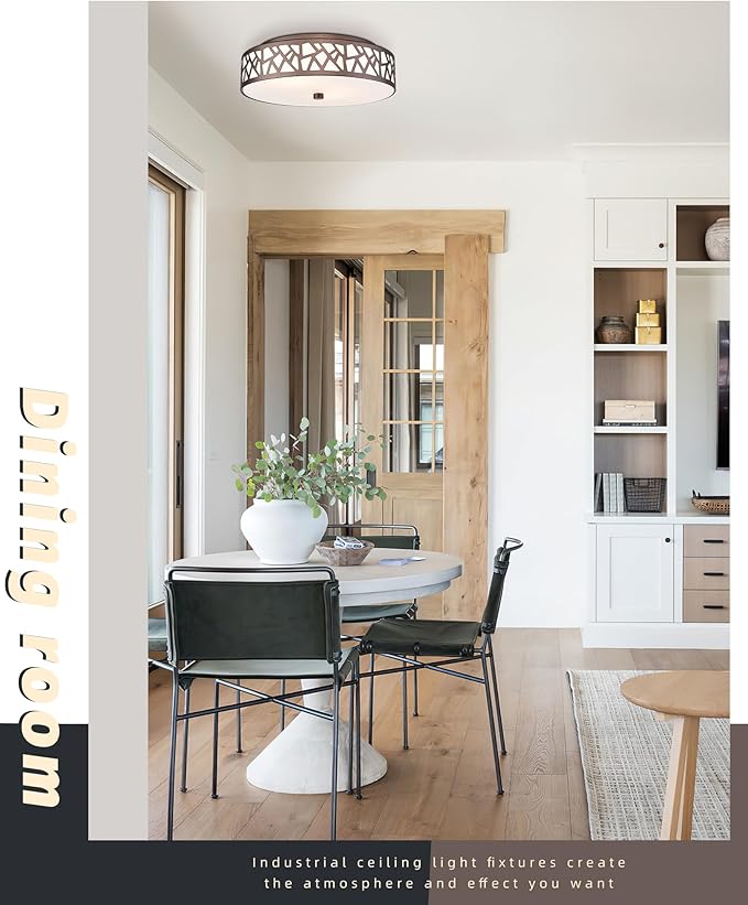• Decor Many Occasions:2- Light kitchen lighting fixtures ceiling has a oil-rubbed bronze look and can be perfectly combined with any style of your home. Vintage flush mount ceiling light decorated in hallways, entryways, living rooms, bedrooms, basements, bathrooms, kitchens, dining rooms, cafes, stores, etc. all highlight the classic high class of your house.