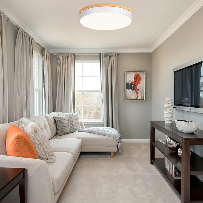 • Dimmable: This LED ceiling light can fully dimmable from 10%-100% when it compatible with a dimmer switch(NOT Included). Satisfies your different requests for brightness. This wood light fixture with a switch around the built-in LED chip, five of Correlated Color Temperature can adjust the light color you need (2700 K to 6000 K). You can select the light suitable for your room