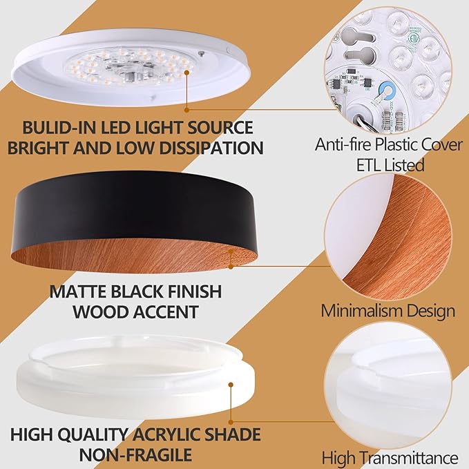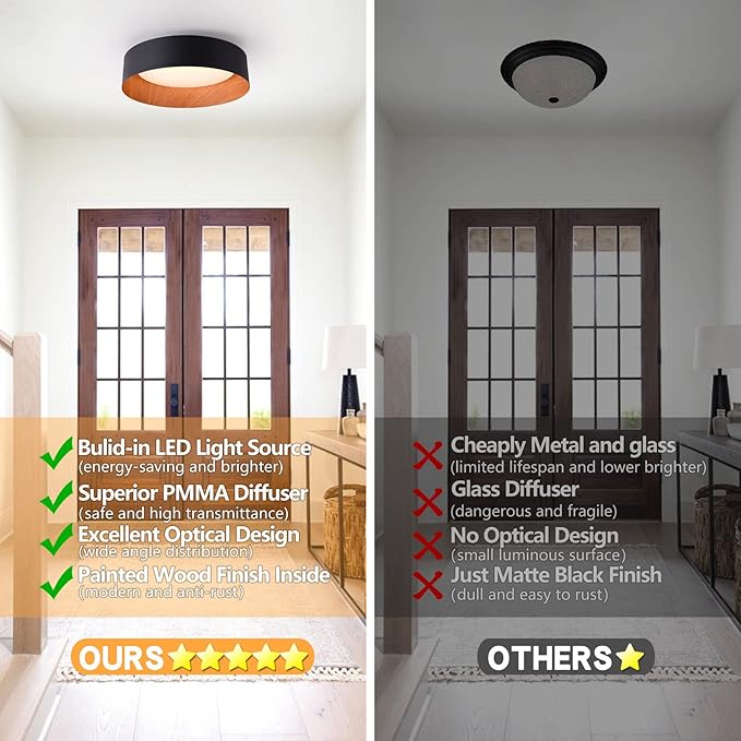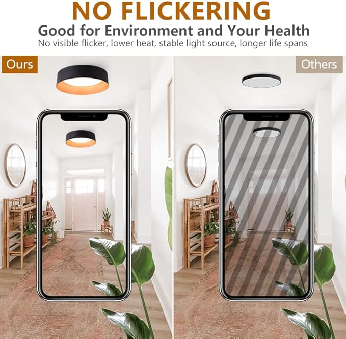 • MINIMALISM DESIGN: The light fixtures ceiling mount feature a matte black frame with wood accent inside.Our kitchen lights ceiling will definitely be an eye catcher for anyone who steps in your house due to this modern super thin and natural design.Offering visual intrigue and a sense of balance at the same time, this kitchen lighting adds a modern, but natural touch to any home