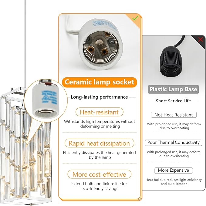• 【Easy to install】 Hardwired, no need for complex installation procedures. This pendant light fixture is designed specifically for American standard junction boxes and can be installed on a flat or inclined ceiling. The packaging includes all necessary components and additional replacement crystal strips. Attention: For your safety, please install under the guidance of an electrician.