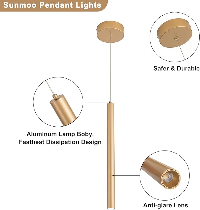 • 🏡【Wide Application Dining Room Light Fixture】The pendant lights for dining room is crafted from gold metal, its frame strikes a modern luxury style. Sunmoo chandelier light fixture making your home full of industrial style and long service life, which can be as dining room chandeliers, pendant lighting for kitchen island, foyer chandelier lighting, living room chandeliers, hallway chandelier lighting, and bedroom chandelier. Simple design line, graceful taste.