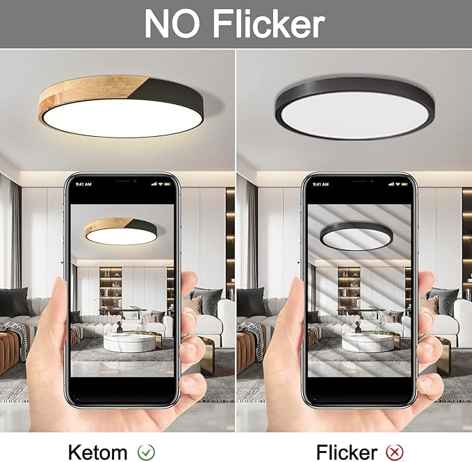 • 【Energy-Saving】Ketom flush mount ceiling light with built-in high quality LED lamp beads, 30W LED lights provide 2700 lumens, equivalent to 150W incandescent lamps to save up to 85% of the energy, while the built-in intelligent driver to provide constant current protection, short-circuit protection, service life of more than 50,000 hours!