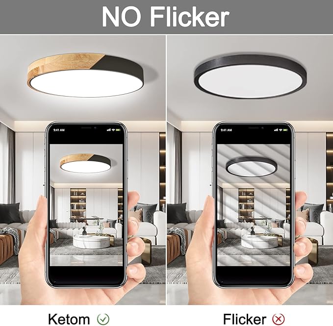 • 【Energy-Saving】Ketom flush mount ceiling light with built-in high quality LED lamp beads, 30W LED lights provide 2700 lumens, equivalent to 150W incandescent lamps to save up to 85% of the energy, while the built-in intelligent driver to provide constant current protection, short-circuit protection, service life of more than 50,000 hours!