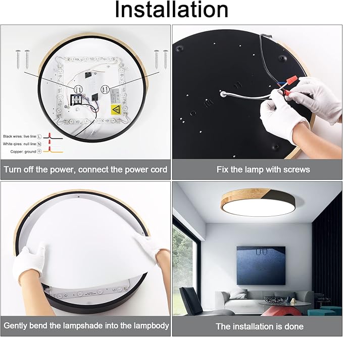 • 【High Quality Material】The flush mount light is made of oak, metal and acrylic. The oak has a smooth surface and the acrylic shade transmits light well with a soft, even light that protects the eyes from glare.