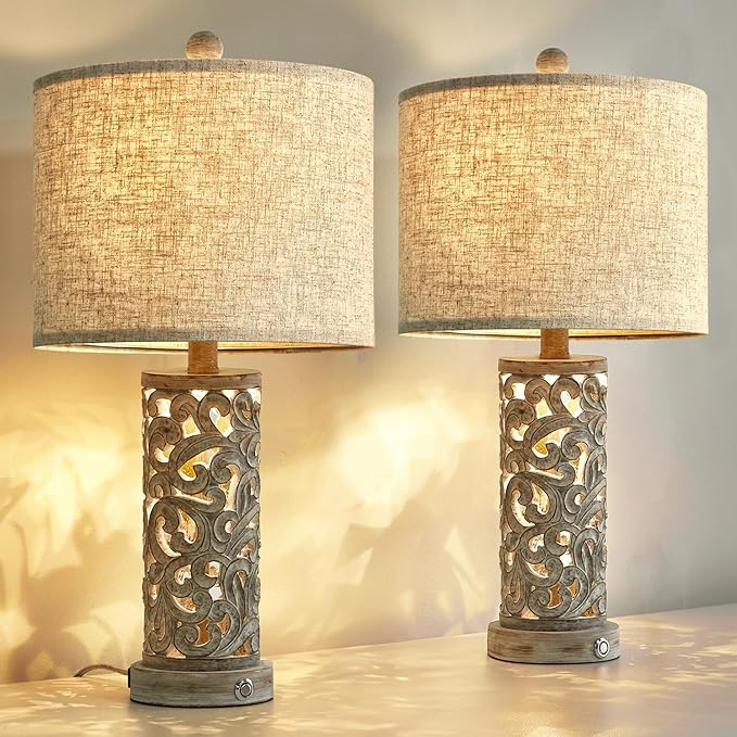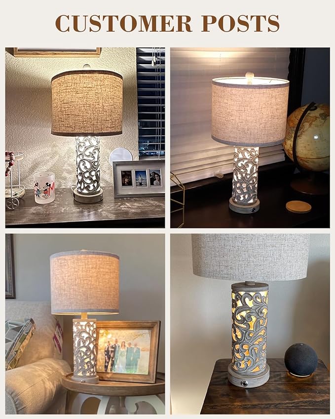 • Eye-Caring Farmhouse Table Lamps for Living room: The linen fabric lamp shade and the 3-way dimmable nightlight makes the glow softer so it can protect our eyes. Table lamp set is suitable for reading or working. I believe this pair of antique and unique table lamps will be the best choice for your family and friends!(Please note that the shade needs to be assembled)