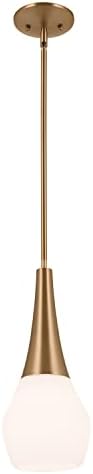KICHLER Deela 17” Pendant Light for Kitchen Island in Champagne Bronze with Satin Etched Cased Opal Glass, 1-Light Hanging Lamp, 52529CPZ