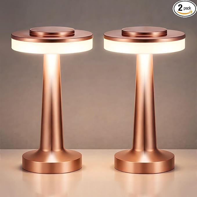 • Portable Lamps Set: the package contains 2 pieces of battery table lamps in mainly rose gold, and each is equipped with a 1800 mAh rechargeable battery that can last up to 15 hours(minimum brightness); Measuring about 4.5 x 4.5 x 8 inches, you can take the lamp to the place you want, portable and handy