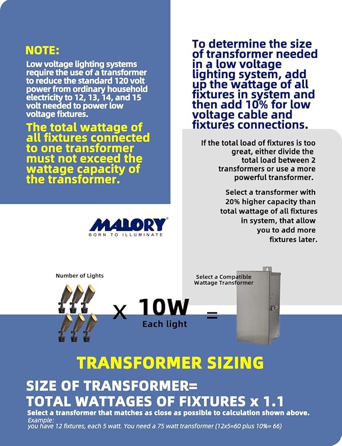 • LIFETIME WARRANTY:MALORY landscape lighting are built to the highest standards of construction and performance, we extends an industry-best lifetime warranty on its brass fixtures and 50,000 hrs for the LED bulbs.Please contact us if you have any issue, we will offer top rated customer service for you.