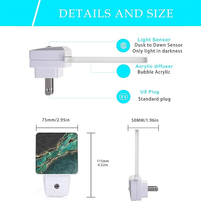 • 【Auto Sensor】 - This Night Light Has A Built-In Dusk-To-Dawn Sensor, So It Can Automatically Turn On And Off Based On The Ambient Light In Your Room. You Never Have To Worry About Turning It On Or Off Manually.