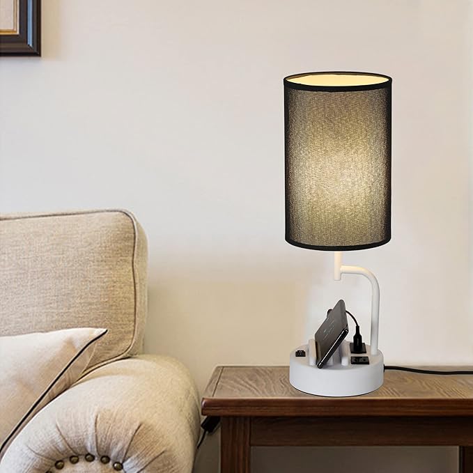 Dreamholder Table Lamp with 3 USB Charging Ports, Modern Desk Lamp with AC Outlet and Phone Stands, Perfect Bedside Lamp for Bedroom, Living Room, Office (Pack of 2), White&Black
