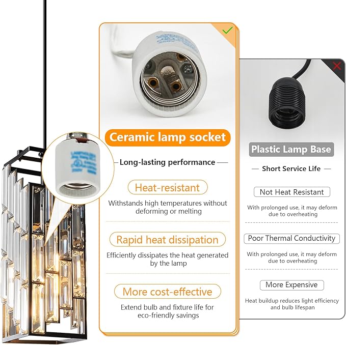 • 【Easy to install】 Hardwired, no need for complex installation procedures. This pendant light fixture is designed specifically for American standard junction boxes and can be installed on a flat or inclined ceiling. The packaging includes all necessary components and additional replacement crystal strips. Attention: For your safety, please install under the guidance of an electrician.