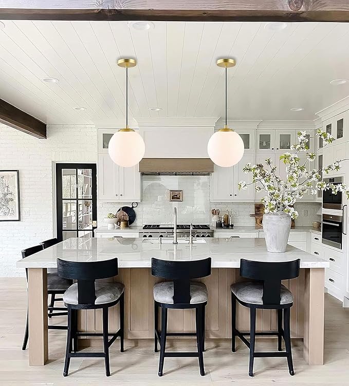 • [ Size and Design ] This gold ceiling milk white pendant wire globe light has a diameter of 8 inch, ceiling tray size of 6 inch, and the adjustable maximum length of the pendant wire is 60 inch. White milk glass globe pendant light is ideal for a variety of spaces, a pendant light featuring a sleek white glass diffuser that adds a touch of style and warmth to any room