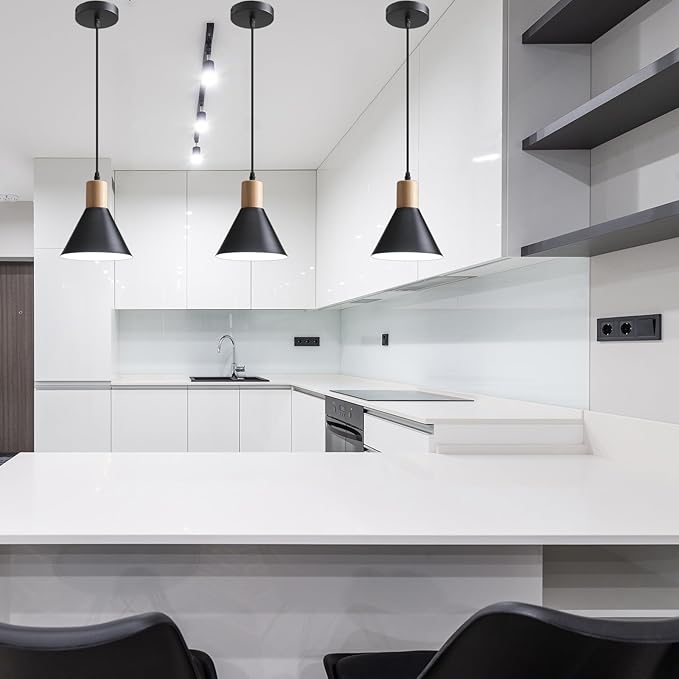 Pendant Lights, 3 Pack Solid Wood Ceiling Hanging Lamp, Modern Matte Black Pendant Lighting for Kitchen Over Island Dining Living Room Bedroom