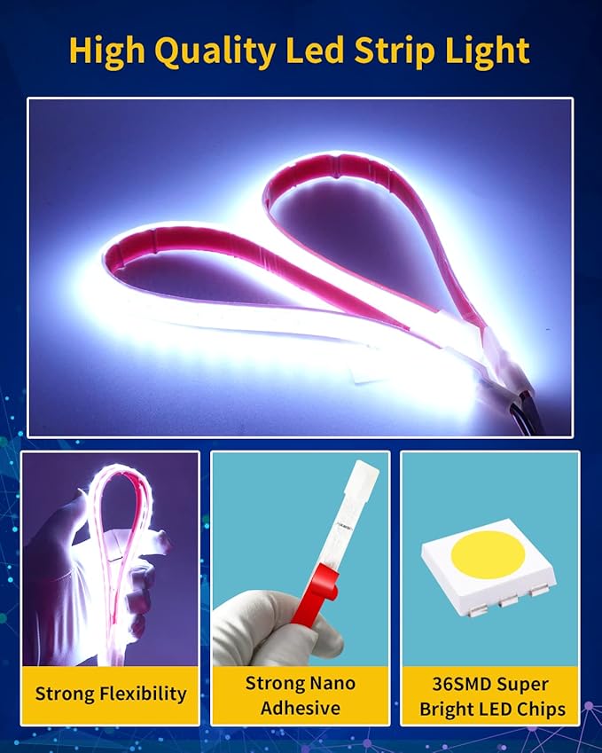 • 【Flexible and Cuttable】Our golf cart lights can be cut every 3 LEDs to your required length,flexible and ultra thin, can be easily installed in between the gap and virtually invisible.