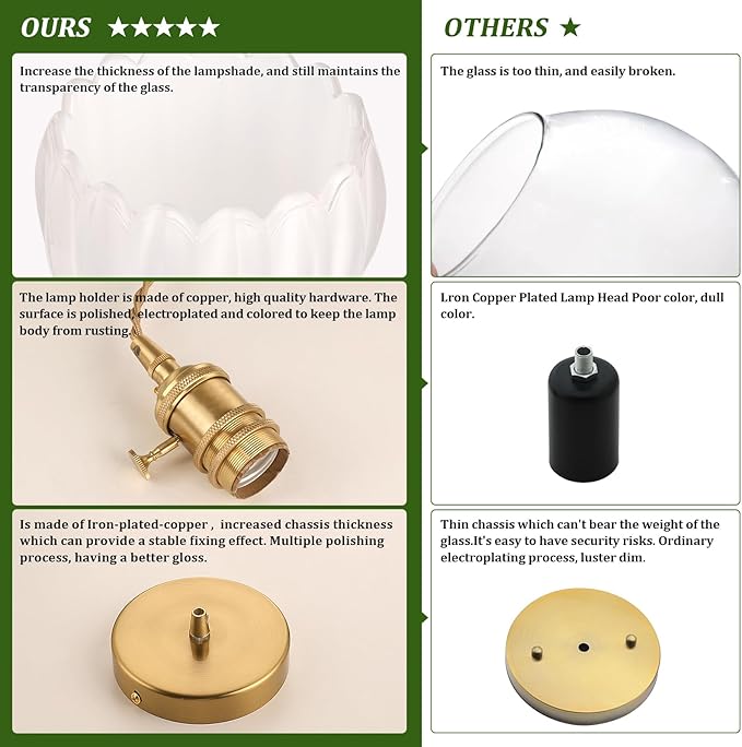 • 【Ingenious Design】The knob switch on the pendant light is exquisitely designed to retain the characteristics of the retro style while providing the convenience of modern life. You can easily turn the light on and off by simply turning the switch. And the wire is wrapped in a rubber coating with fabric covering for safety and reliability.