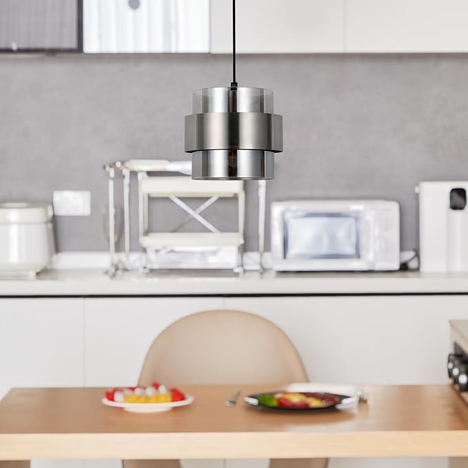 Pendant Lights Kitchen Island Lighting,7 Inch Adjustable Mini Glass Haning Lights for Entrance Aisle Decorative Lighting Fixture for Dining and Bar Table (2 Pack Brushed Nickel)