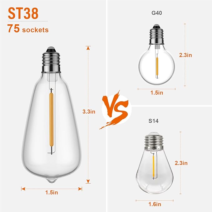 • Energy-Saving 30000 Hours: With increasing emphasis on sustainability, patio lights often use LED technology, which consumes significantly less energy compared to traditional incandescent bulbs. LED string lights are not only eco-friendly but also help reduce electricity costs.