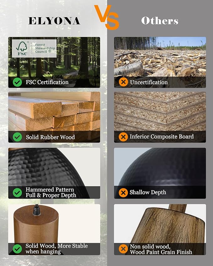 • 👍【FSC Certified Solid Wood】In an era saturated with plastic products, we choose to return to nature and embrace a sustainable lifestyle. Each lamp is a gift from nature crafted from FSC certified solid wood, ensuring that the wood comes from sustainably managed forests. This allows you to enjoy life while also contributing to the future of our planet.Unlike plastic natural solid wood offers an unique grain patterns. Each lamp is like a piece of natural art, telling you stories of life and time.