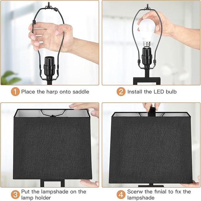 • 💡 ️Easy to Assemble & Fabric Shade: The exquisite fabric shades of the table lamps are made from high-quality materials, ensuring they are durable and long-lasting. The black lamps are designed to be easy to assemble, and emits comfortable lighting that creates a warm and relaxing ambiance at home. The bedside lamps will be an ideal choice for home decoration as well as a perfect Christmas, birthday, anniversary, and other festival gifts!