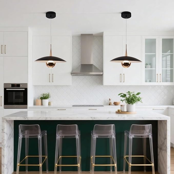 • Creative Adjustable Unique Design: The black and metal retro hanging kitchen lights mixing with unique metal shade, emits ample glow to brighten up the whole space, provide a timeless vintage touch and a clean modern aesthetic in your house. Designed iron pendant lighting island lights for kitchen, your farmhouse, living dining room, restaurant, corridor, cafe bar, club,coffee shop,hallways, balcony,office, bedroom, and hotel, popular color art round metal shape decorated your elegant space