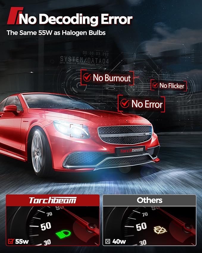 • 【 Vehicles Compatible】Torchbeam HB3 Led bulb not only looks proportional to the original factory bulb, but also uses a 12-volt setting, and comes with a decoder, so there will be no bad radio signal and bulb flicker after installation