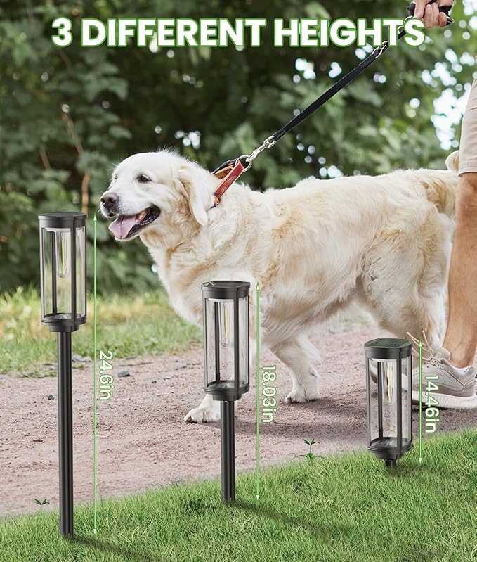 • ALL-WEATHER RESISTANT & EASY TO INSTALL: The outdoor solar yard lights boast a high waterproof level of IP65, ensuring resistance to all types of weather conditions, including rain, snow, frost, and sleet. Installation is effortless; simply connect the stake, pole, and solar light, then insert the solar lights into the ground or lawn where they can receive ample sunlight for optimal lighting.