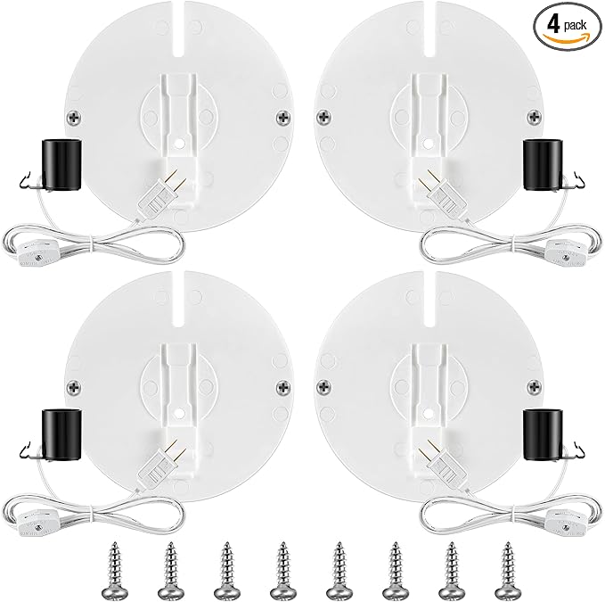 Meonum 4 Set Blow Mold Light Kit Replacement, E27 E26 Single Light Cord Kit with Switch Fuse Plug, for Indoor Outdoor Halloween Christmas Village House Craft Decorations and Salt Lamp