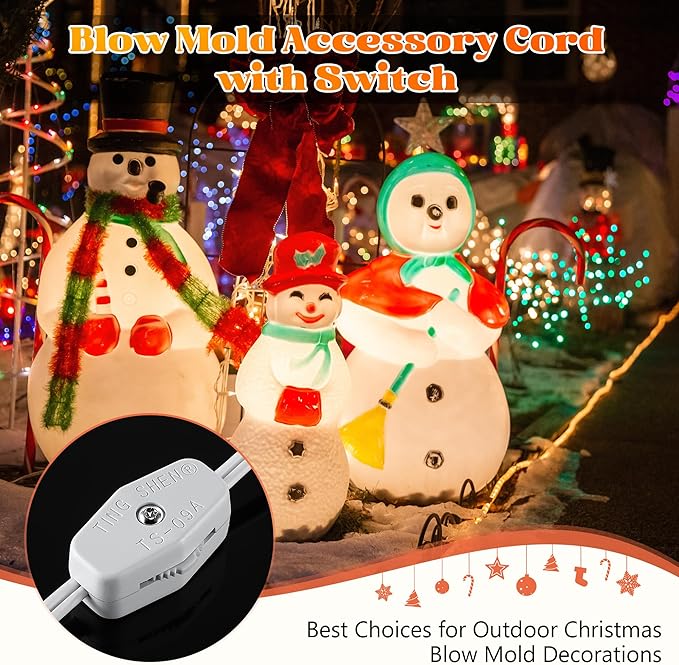 • Accessory Cord with Switch: there is a switch installed on the single light cord, you can control the blow molded light at will through this switch, the plug 125V 5A meets the American standard, easy to plug in and pull out; And the plug has 2 pieces of fuses built in to ensure your absolute safety during use