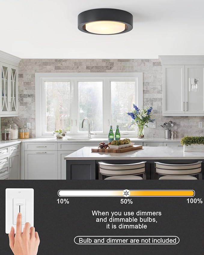 • 【E26 BASE SOCKET】The ceiling light with standard USA socket is compatible with E26 medium base bulb, such as incandescent, LED, CFL and halogen bulbs (bulb MAX 60W). This close to ceiling light is easy to maintain afterwards, just wipe with a dry cloth.