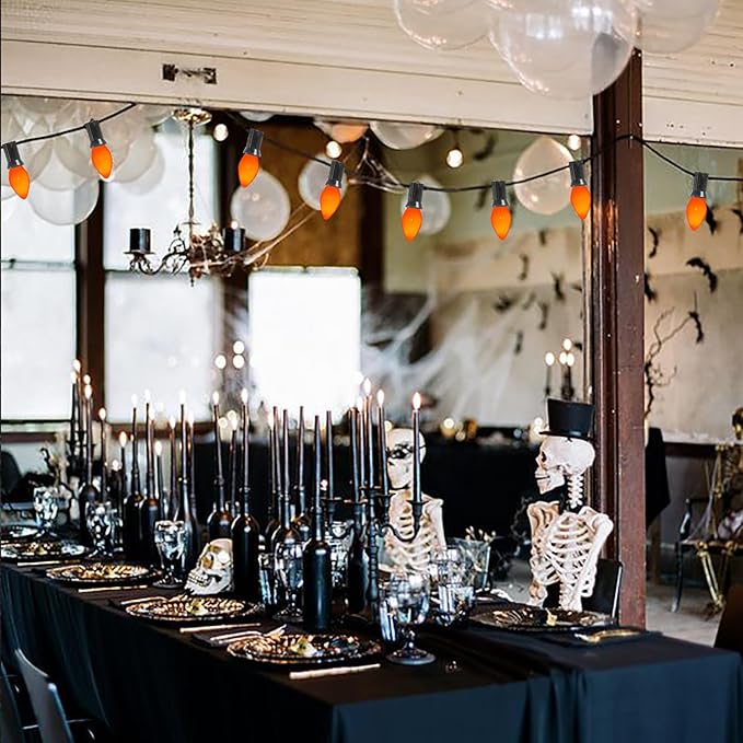 • Orange Christmas String Light Bulb: The vibrant orange colour of the C7 retro incandescent bulb adds a festive touch, creating a warm and pleasant atmosphere for your Halloween and Christmas decorations. Perfect for Halloween pumpkin lights, chandeliers, wall sconces, Christmas light strings and other decorative light fixtures