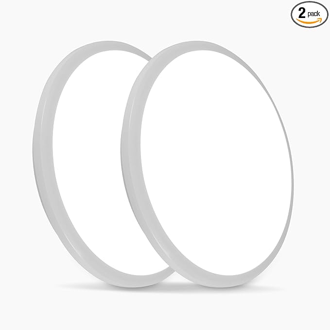 DELIPOP 2 Pack 12 Inch LED Flush Mount Ceiling Light, 24W Surface Flat LED Ceiling Light for Indoor/Outdoor, IP54 Waterproof Round Ceiling Light Fixture for Bathroom, Bedroom, Kitchen, Hallway