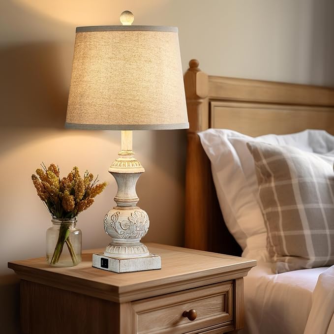 • ❤【Useful Dual USB Charging Ports】Each bedroom lamps set of 2 contains two 5V/2A USB charging port,it's easily to charge your phone,tablet or other electronic devices when you're at work or sleep.Charging function still work whether the rustic lamps for nightstand is on or off. No need to search around for wall socket to charge anymore.This table lamps set of 2 is not a night light but fix great in bedroom night stands, living room end tables, entryway table, home office side table,