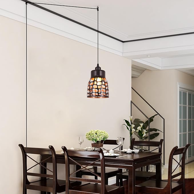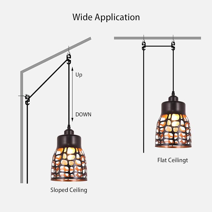 • 【Bulb Type】The retro black metal pendant lamp with E26 socket, compatible with Incandescent, LED, CFL and Halogen Bulbs (Not Included), Works up to 60W max. The ceiling pendant can be easily dimmed when used with dimmable bulbs and compatible dimmers.
