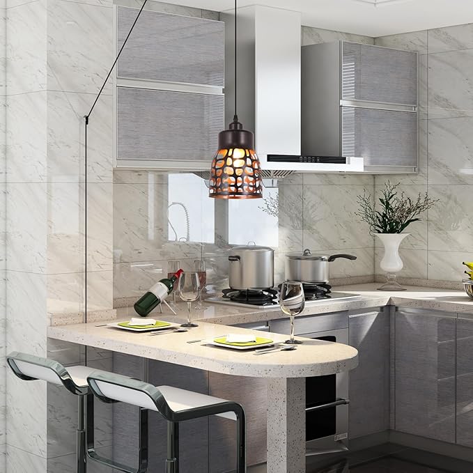 • 【Adjustable Height】The kitchen island pendant lighting is 7.9 inches in diameter and 54 inches in height, and the hanging board is 4.72 inches in diameter and 0.79 inches in height, with an adjustable long rope. The maximum length is 47 inches, and the height of the rope can be adjusted to suit the installation needs.
