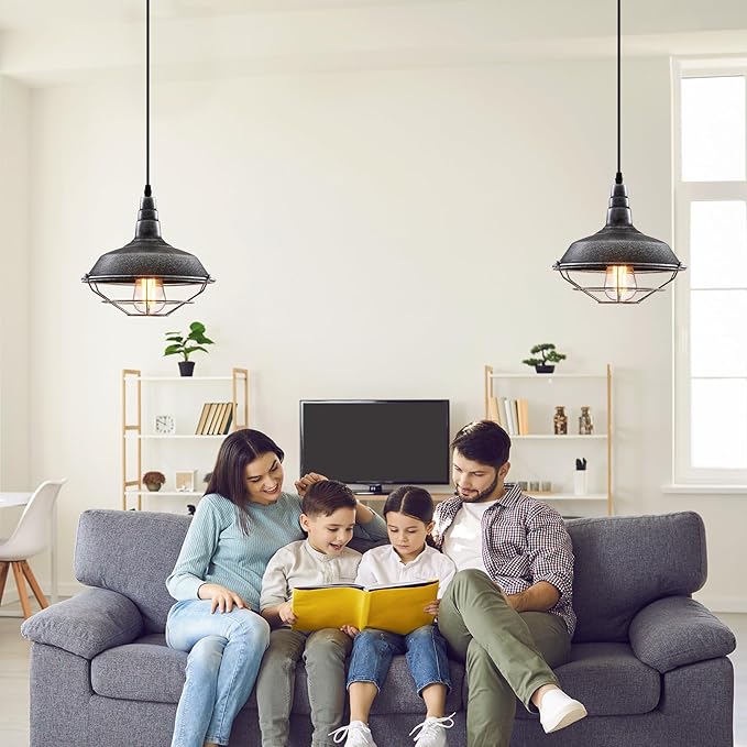 Hight Quality Material:This pendant lights kitchen island is made of high-quality iron material. It is made by polishing, welding, painting, etc.it is sturdy, corrosion-resistant and durable. The sturdy wire cage provides reliable protection for the bulb