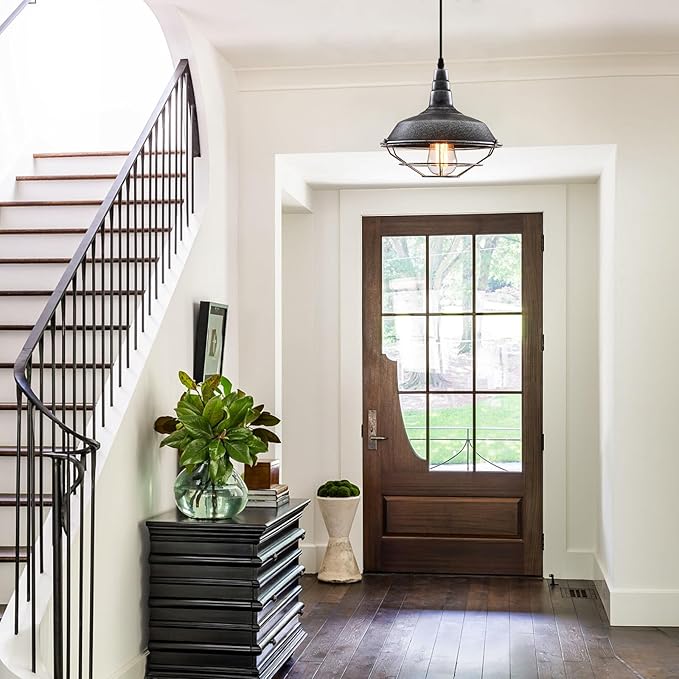 Installation Requirements:This farmhouse pendant light can be installed in flat and sloping ceiling. Hardwired. E26 US standard lamp socket, compatible with a variety of bulbs(Max:60W).Likes Edison, CFL or LED light bulbs, 110-120V. [NOTE]:BULB NOT INCLUDE