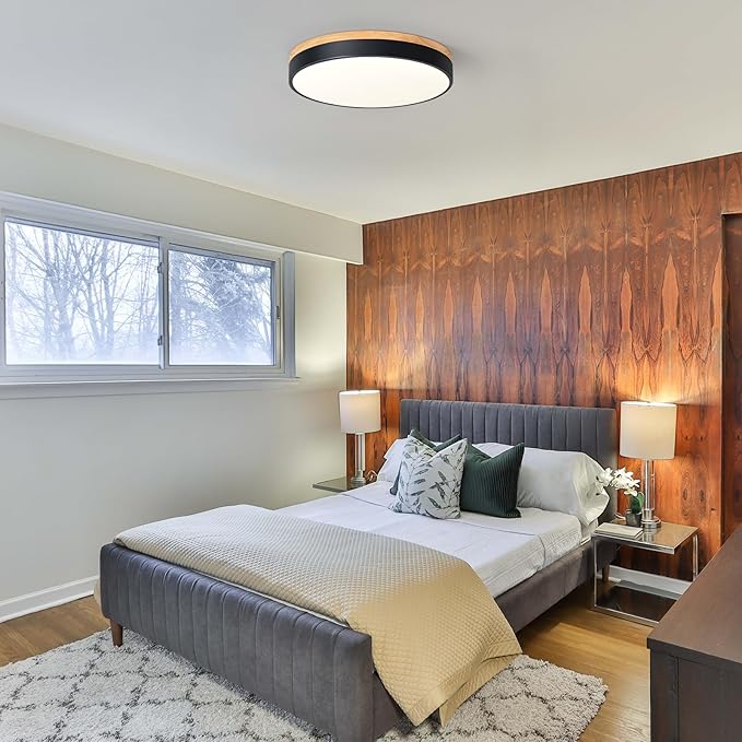 Brightness Dimmable and Five Light Colors Selectable: The wood ceiling light can be adjusted in brightness when it is used with a dimmable switch (NOT Included). The led ceiling light can be adjustable in five color temperatures (2700 K to 6000 K) by the switch around the built-in LED chips, and you can find the perfect light for your space