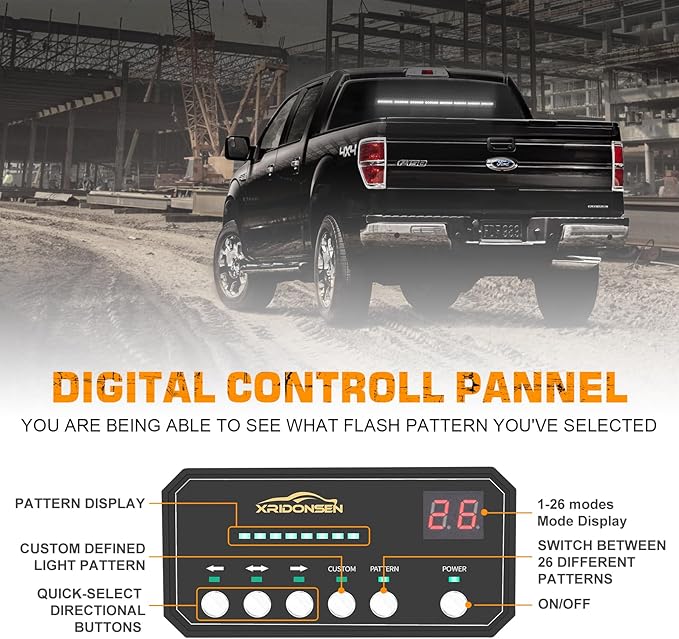XRIDONSEN 35 inch White Traffic Advisor Light Bar 48 LED Emergency Strobe Lights Safety Warning Lights Front/Rear Window w/Display Controller for Firefighter Police Law Enforcement Vehicles Trucks
