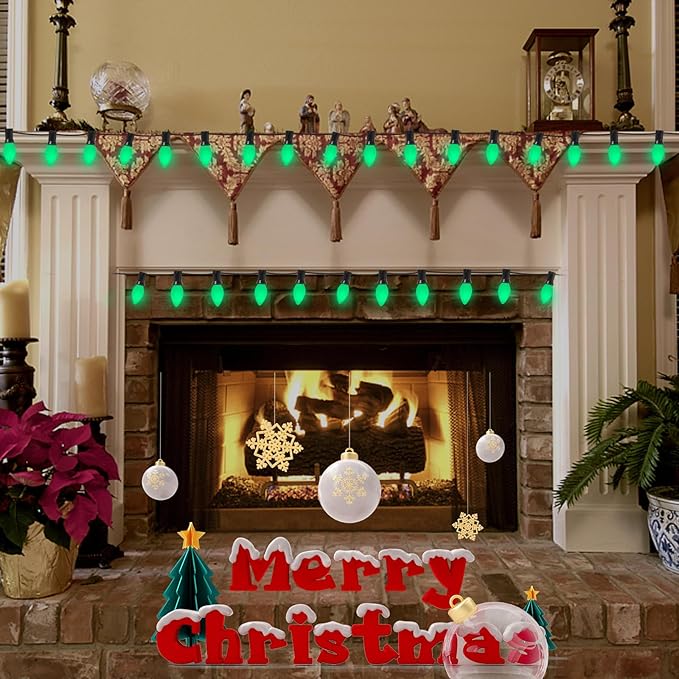 • UL Certified for indoor and outdoor use, C7 led Christmas White light bulb emits 2700K warm white light, C7 green Christmas bulb light around your patio to create a cheerful atmosphere for your Christmas or St. Patrick's Day decor.