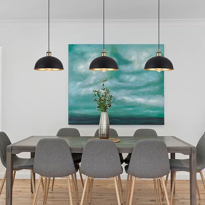 • 【Small Size】The 3-pack black dome pendant lights lampshade is 10.23" in diameter and 4.33" high.The hanging cord can be adjustable, and the max height is 59''. 3-packs of a set to meet any needs of the home.