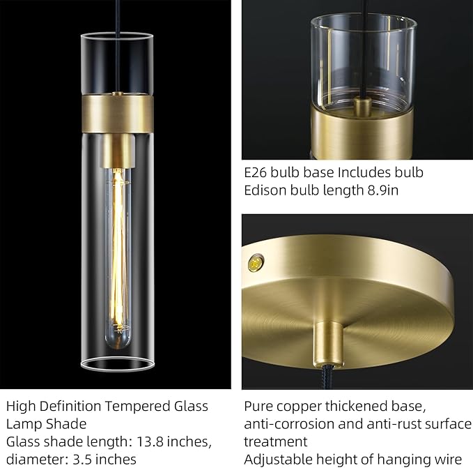 • Glass Tube Pendant Light: This modern glass pendant light kitchen island is made of clear glass to maximize light and brightness. Not only do they illuminate the darkness better, but they also decorate the house nicely. Whether it's modern decor or vintage farmhouse style, these brass glass pendant lighting will fit in perfectly