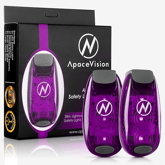 • EXCEPTIONAL DESIGN. WINNING FUNCTIONALITY. Stay safe with this slim, lightweight, compact and super bright set of safety lights. Each light weighs just 1/3 oz, small as a USB stick. So light and compact you won't know you're wearing them, but motorists will spot you right away. 3 powerful lights per device means high visibility, 3 eye-catching lighting modes for any occasion : steady, slow flashing, fast flash. Industry leading batteries included give you up to 100 hours battery life.