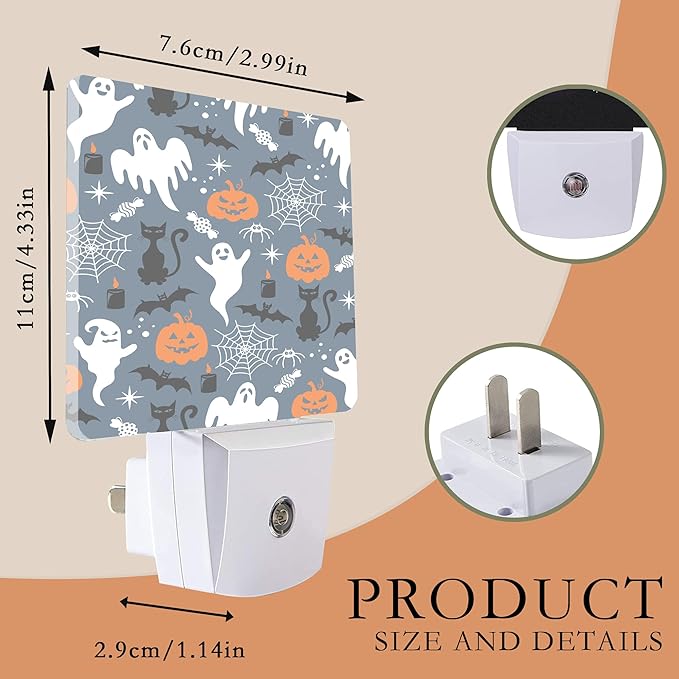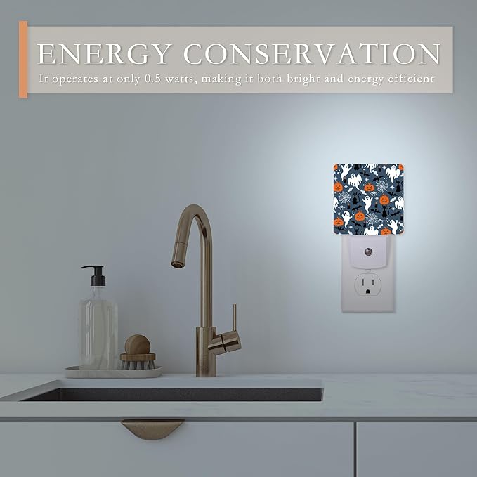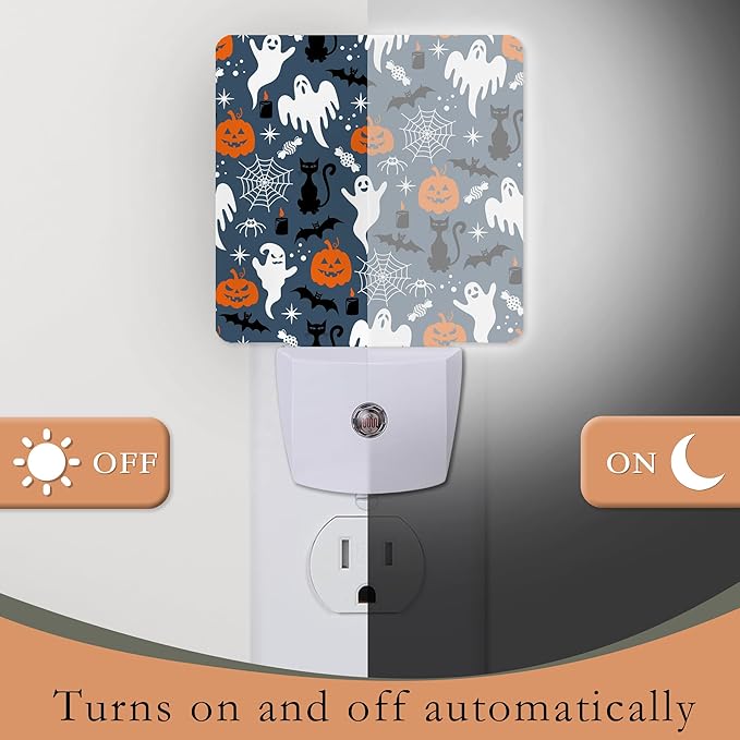 Halloween Night Lights Plug into Wall,Black Cat Ghost Pumpkin Night Light Dusk to Dawn Sensor LED Lamp 0.5W for Boys/Girls/Women/Men Decorations Room 0.5W Sleep Friendly