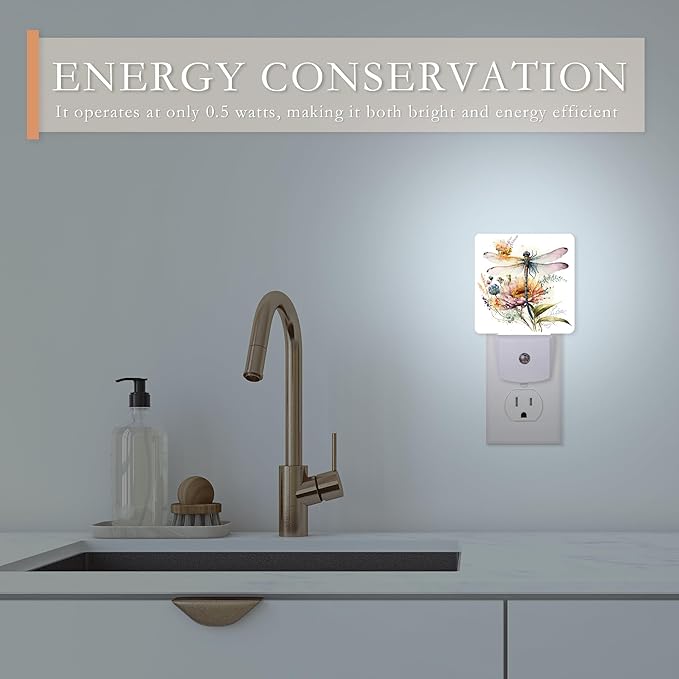 Night Light,Dragonfly Watercolor Night Lights Plug into Wall for Boys Girls Bedroom Decorative Half Round Nightlight Led Lamp 0.5W Sleep Friendly