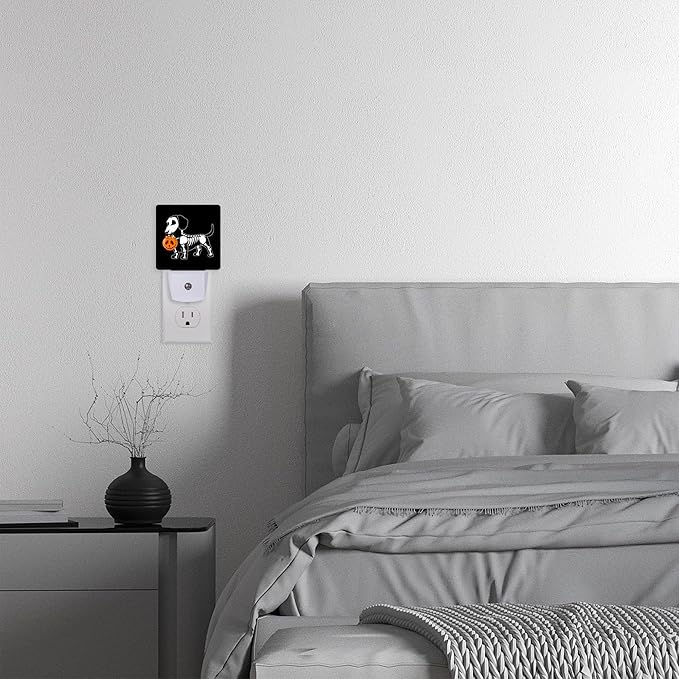 Night Light,Halloween Dachshund Dog Night Lights Plug into Wall for Boys Girls Bedroom Decorative Half Round Nightlight Led Lamp 0.5W Sleep Friendly