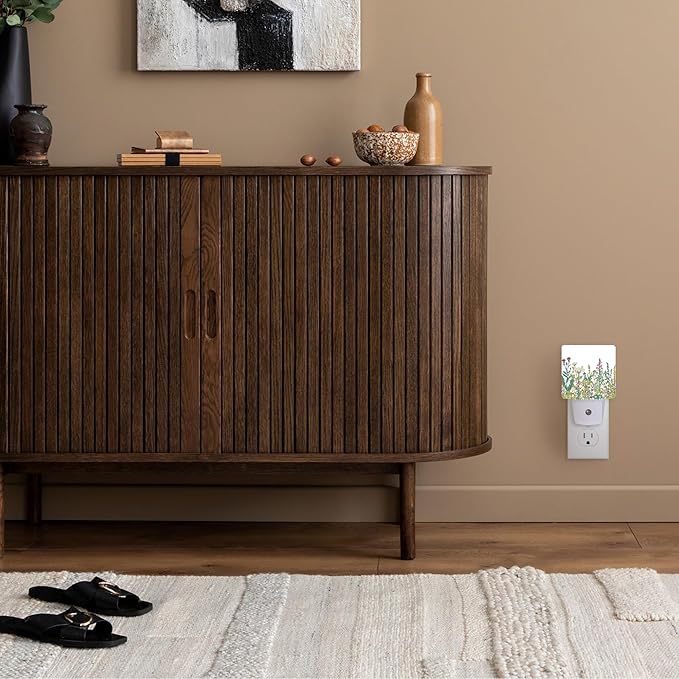 Night Light,Herbs and Wild Flowers Night Lights Plug into Wall for Boys Girls Bedroom Decorative Half Round Nightlight Led Lamp 0.5W Sleep Friendly