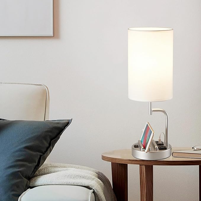 Dreamholder Table Lamp with 3 USB Charging Ports, Modern Desk Lamp with AC Outlet and Phone Stands, Perfect Bedside Lamp for Bedroom, Living Room, Office (Pack of 2), Silver