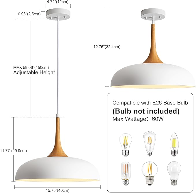 • Modern Design Style: VIOlOEMI modern pendant light is aesthetically pleasing in design. Its clean design features a white bowl shade with a faux wood grain top (Not made of wood), adding a touch of elegance to any space. The contrasting colors and textures create a sleek and rounded look that is impressive and can easily blend into a variety of interior styles